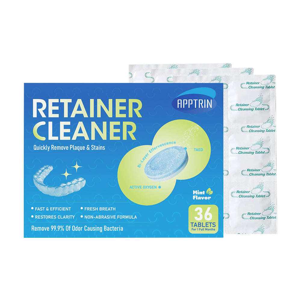 Use APPTRIN Retainer Cleaner Tablets daily to clean retainers, full-plate dentures, partials, aligners and other dental appliances